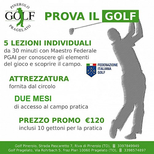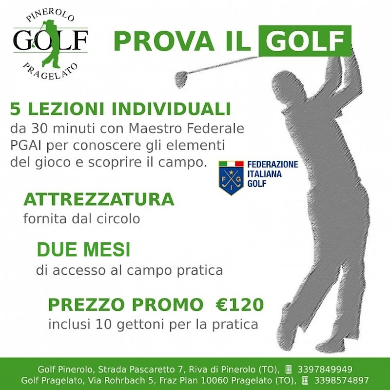 Il Golf è uno degli sport più popolari e praticati al mondo, è uno sport ideale per tutte le età, sano, socievole e disciplinato che incoraggia valori positivi quali la cortesia, l'onestà, l'integrità, la sportività e il rispetto per la natura. Come provare a giocare a Golf ? ll Golf Pinerolo-Pragelato organizza delle giornate di prova gratuita per coloro che non hanno mai praticato il Golf. L'elenco aggiornato degli Open Day presso il Golf Pinerolo o il Golf Pragelato è disponibile consultando il calendario del nostro Club. Nei giorni riportati i maestri professionisti presso il nostro circolo sono a disposizione per farvi provare gratuitamente le emozioni dello sport più praticato al mondo. Il circolo mette a vostra disposizione gli spazi e l'attrezzatura necessaria. Vestitevi comodi in base alla stagione e venite a provare. Non lasciatevi ingannare dai luoghi comuni su questo meraviglioso sport. Durante le giornate di prova gratuita (Porte Aperte/Open Day) saremo a vostra disposizione per darvi tutte le informazioni necessarie in merito a lezioni, prezzi e materiali necessari per iniziare il vostro percorso nel mondo del Golf. Prossimi OPEN DAY al GOLF PINEROLO: